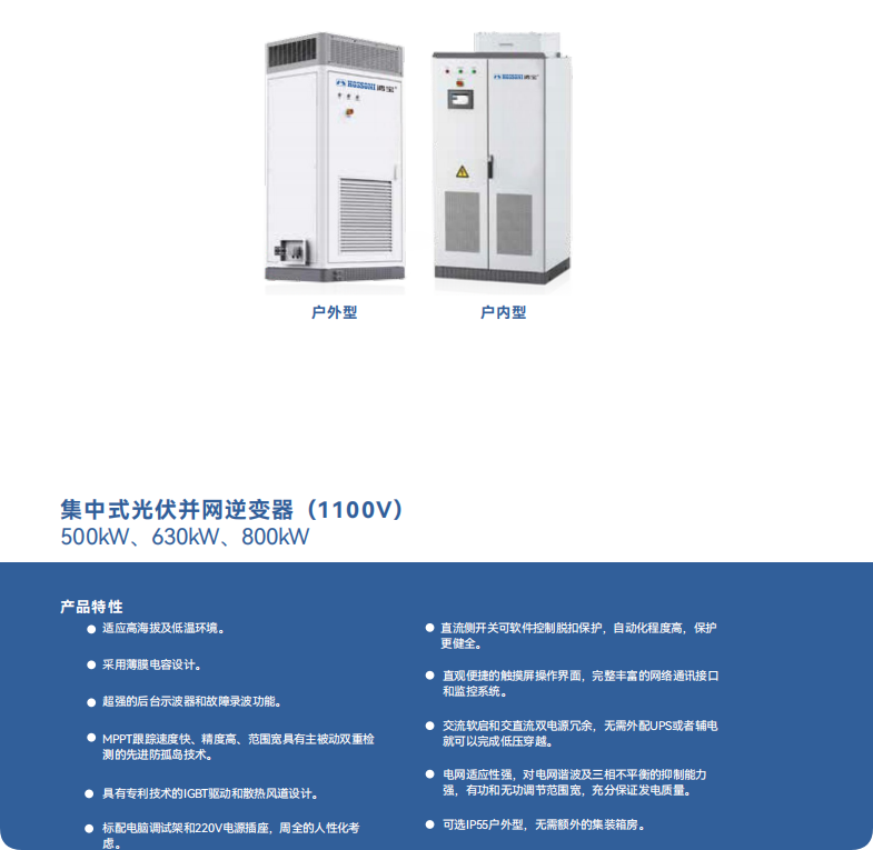 集中式光伏并網(wǎng)逆變器 (1100V) (500kW、630kW、800kW)